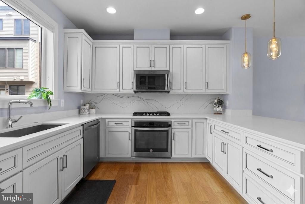 Experience the best of modern living in this bright end-unit townhome, tucked into a light-filled corner that offers a distinct sense of privacy. Built in 2017, this home features sophisticated upgrades including genuine hardwood floors, a designer kitchen, and upgraded lighting throughout. Versatile Four-Level Layout • Lower Level: Includes an attached garage and a private bonus room perfect for a home office, gym, or playroom. • Living & Dining: The main level offers an airy, open-concept floor plan centered around the upgraded kitchen—ideal for entertaining. • Bedrooms: Every bedroom is a private retreat featuring its own dedicated full bath. The third level is anchored by a spacious owner’s suite with a walk-in closet. • 4th Floor Loft & Terrace: A premier feature of the home, this top-level loft provides a secondary living area that opens onto a private rooftop terrace. • Parking: Ample space for up to 3 cars between the rear-entry garage and two included permits. Unbeatable Convenience Commuters will appreciate the 7-minute walk to the Metro for easy access to Washington, D.C. This home is perfectly positioned with large windows with a lovely view of the community park and sits just footsteps to the clubhouse with pool, gym, playground, and more.